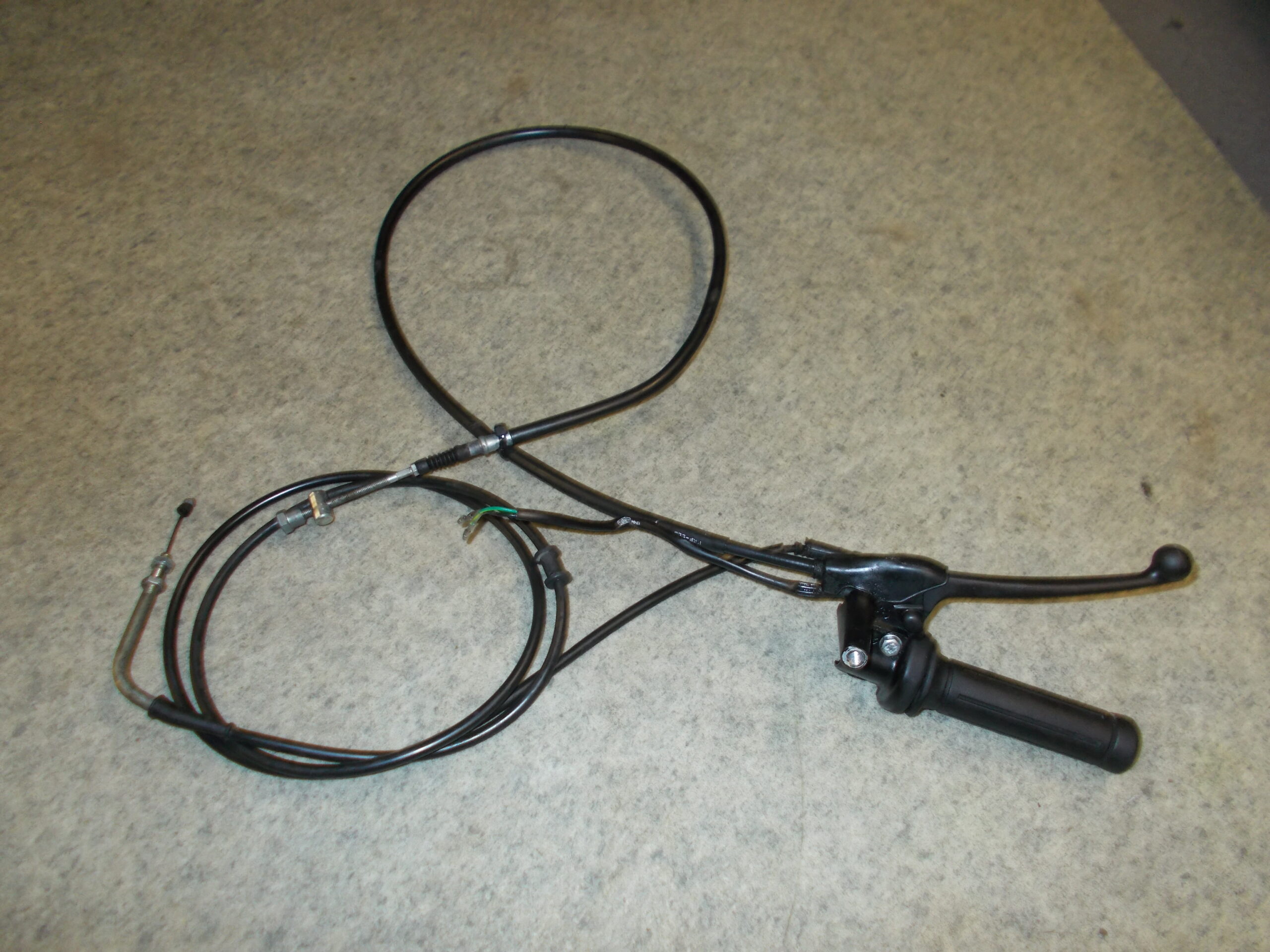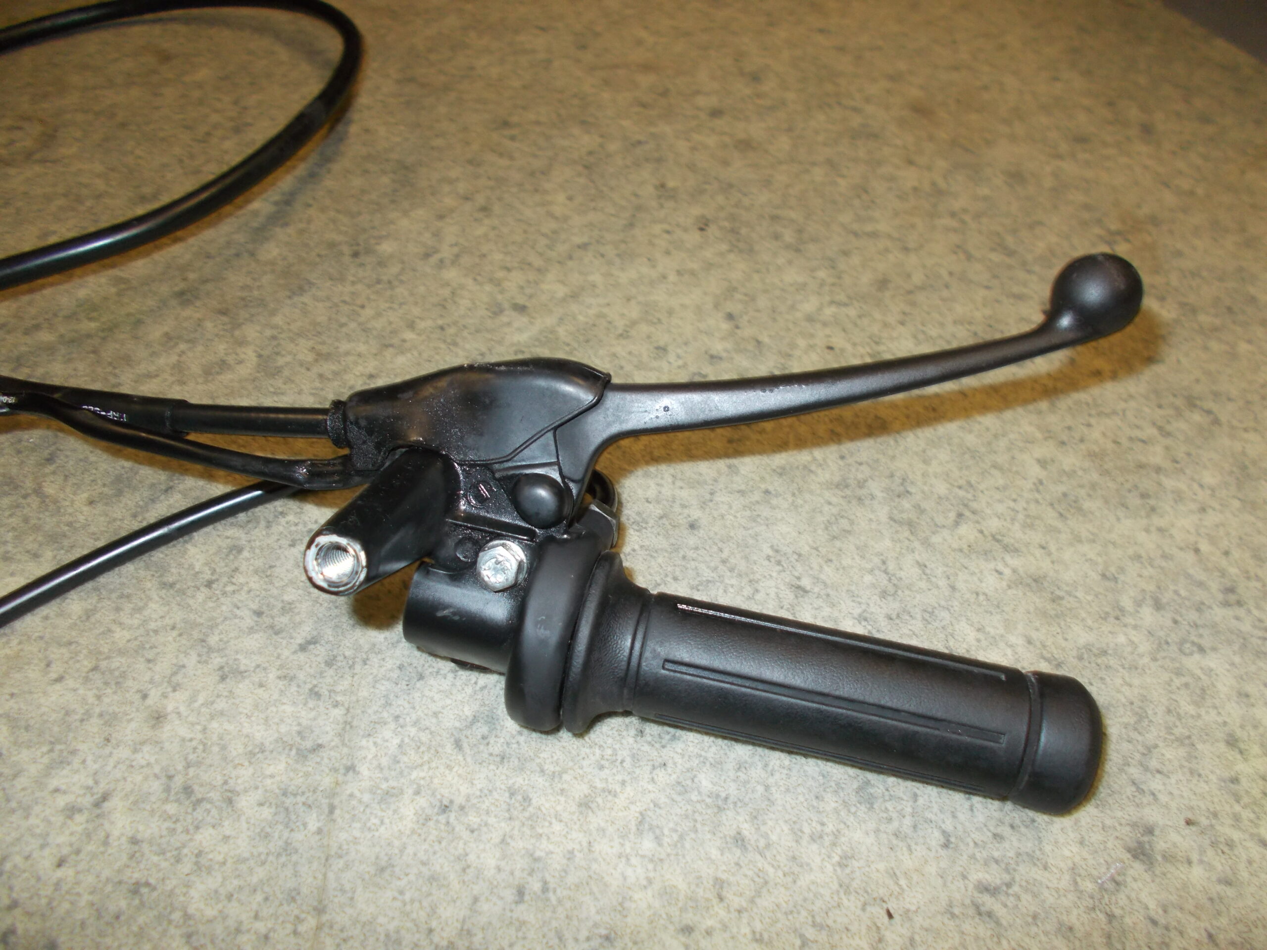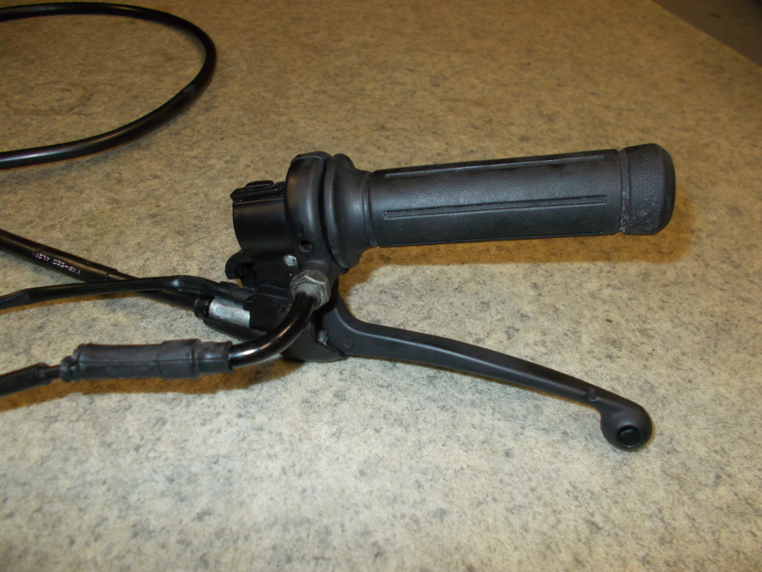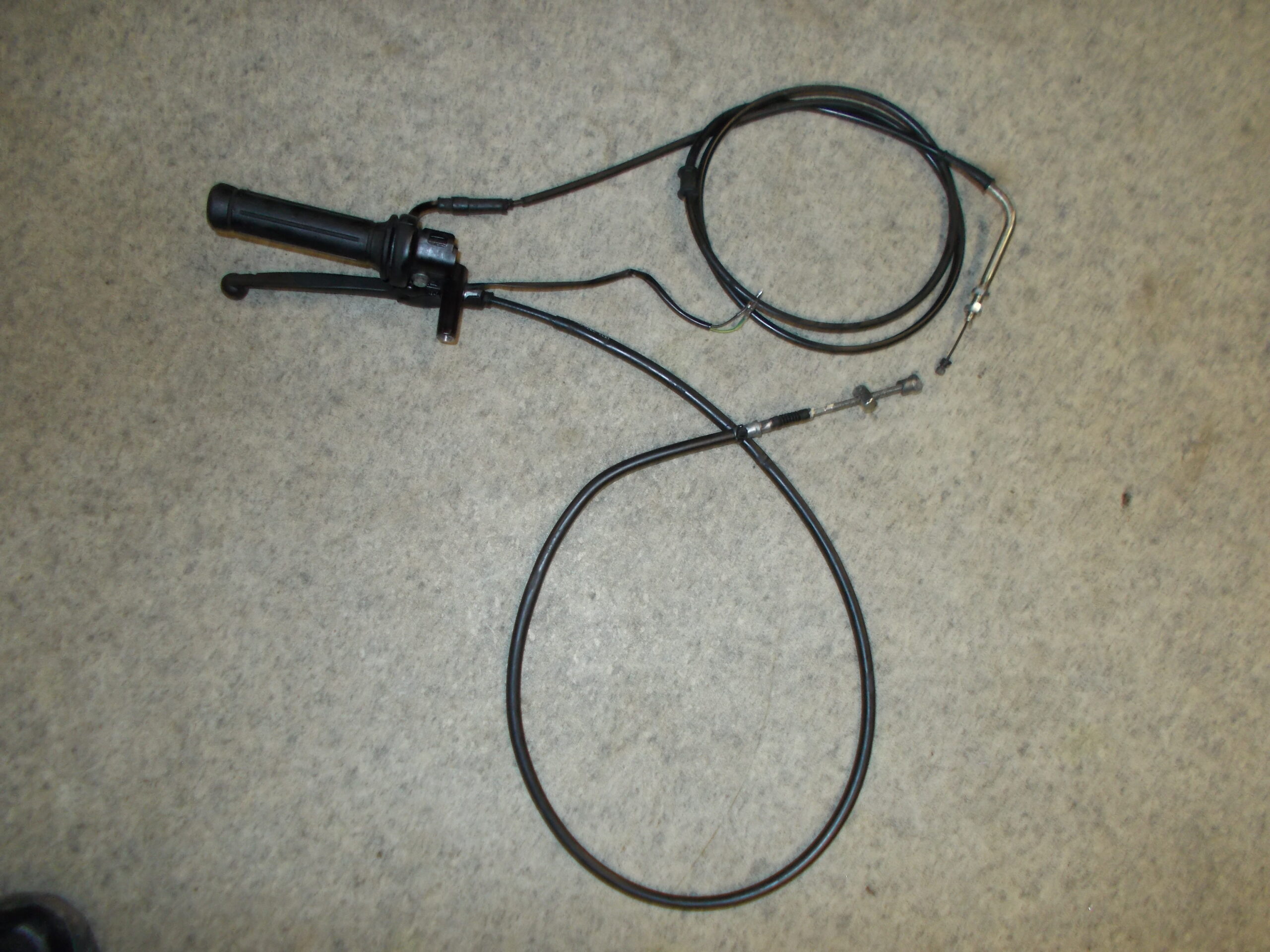 Gebrauchter Gasgriff incl. Lenkerklemme, Gaszug und Bremszug vorne von einem Motorroller Honda Lead 100ccm Typ JF11A.