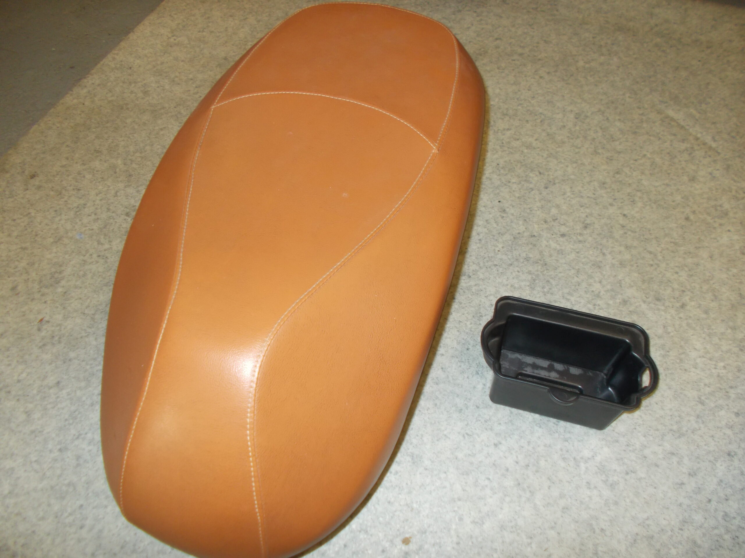 Die Sitzbank ist in gutem Zustand. Das Helmfach ist incl. dem Batteriekasten.