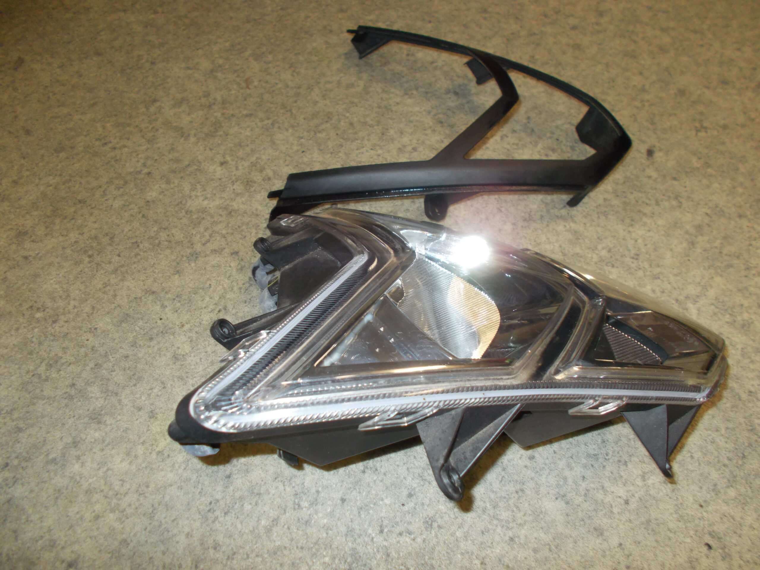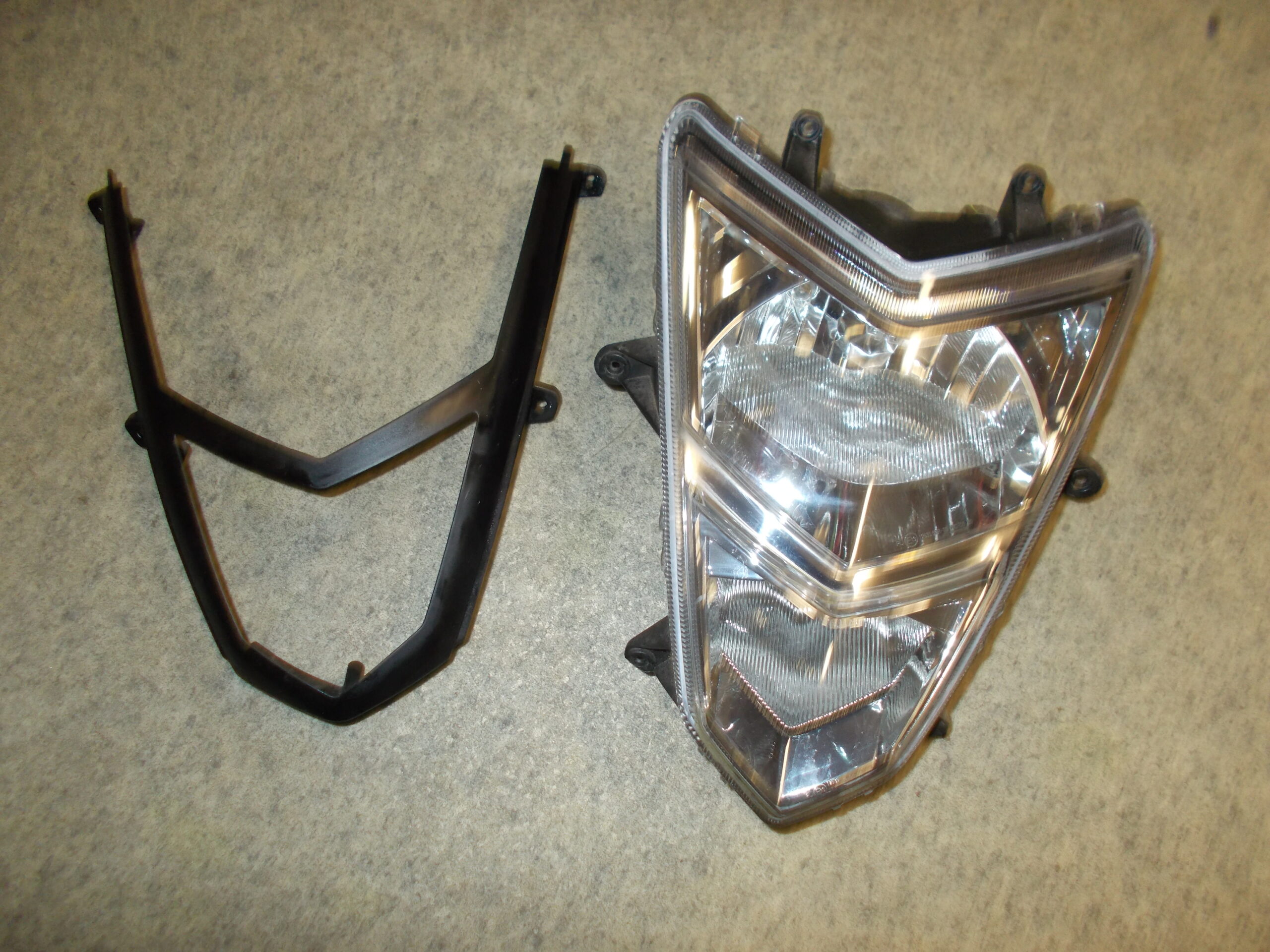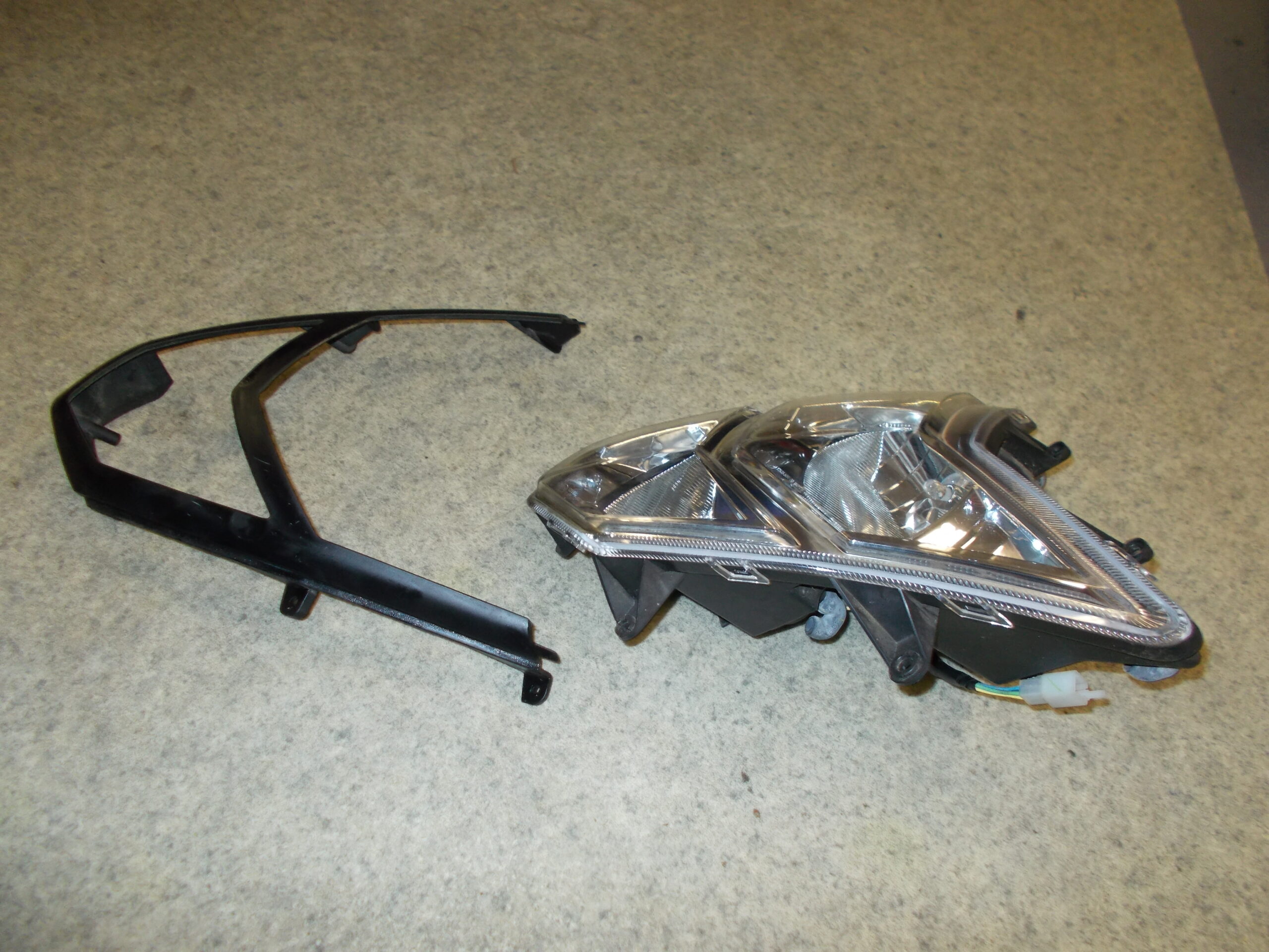Gebrauchter Scheinwerfer incl. Leuchtmittel und Abdeckrahmen in schwarz von einem Motorroller TGB Bullet 50 / Pegasus R50X.