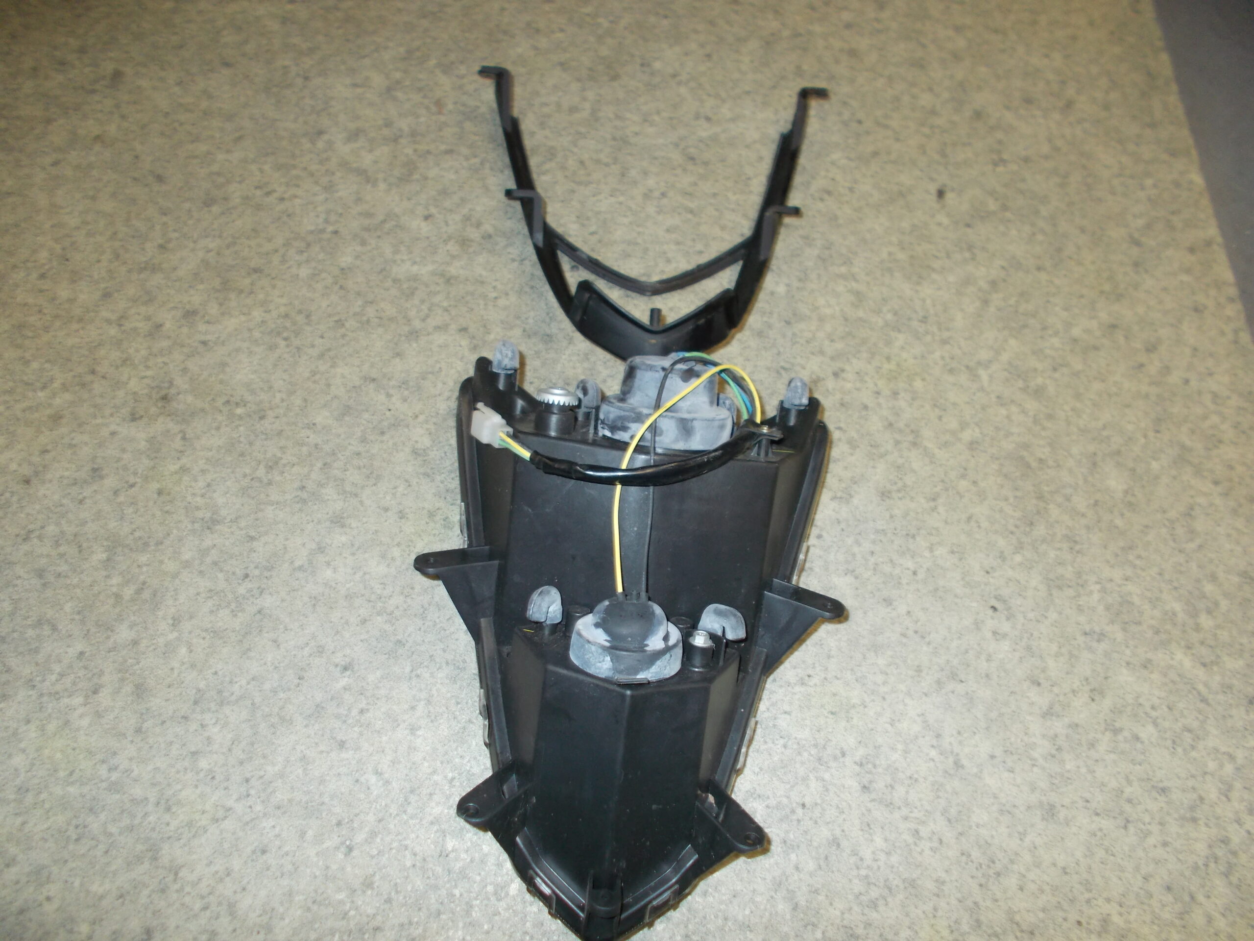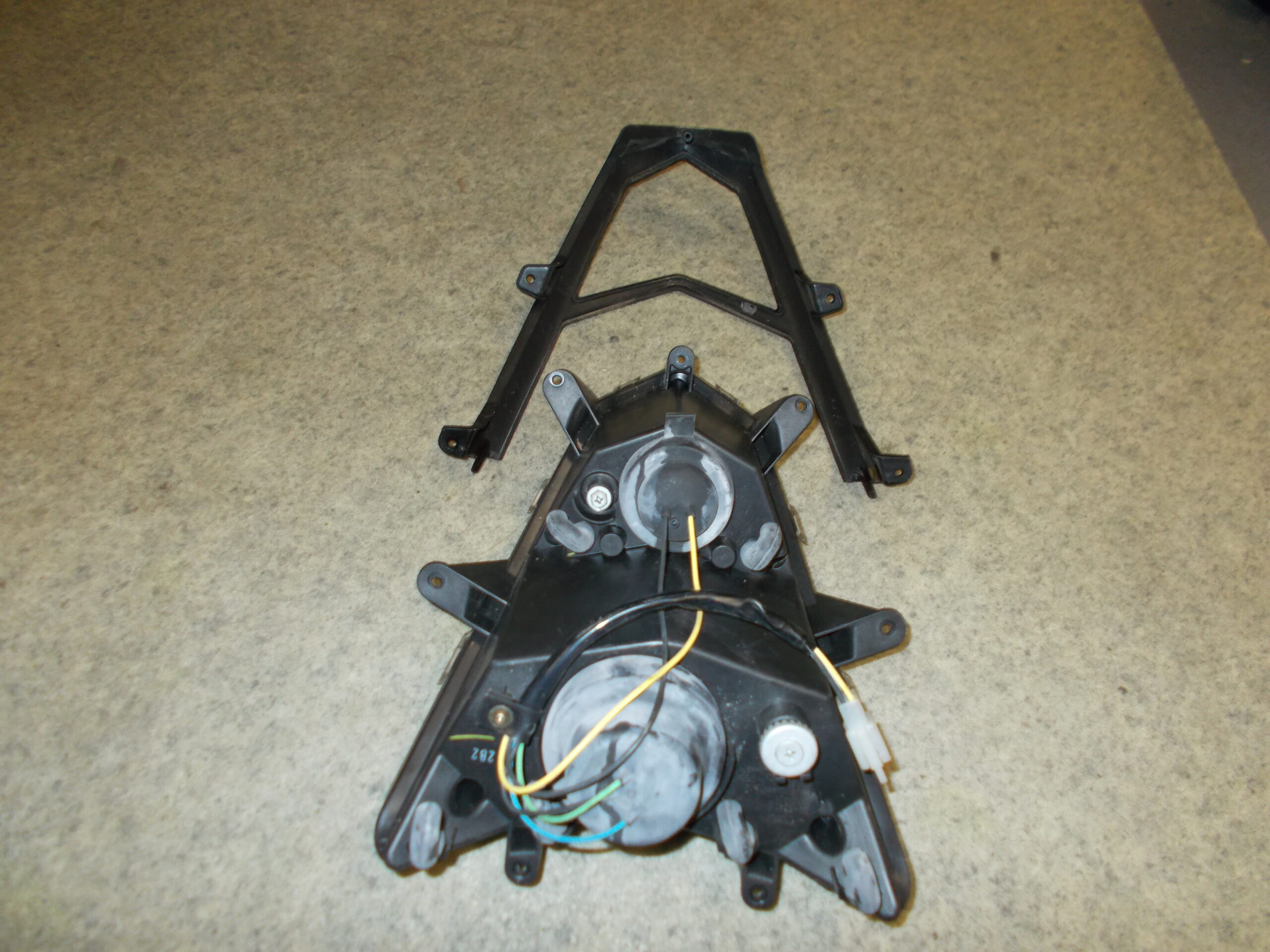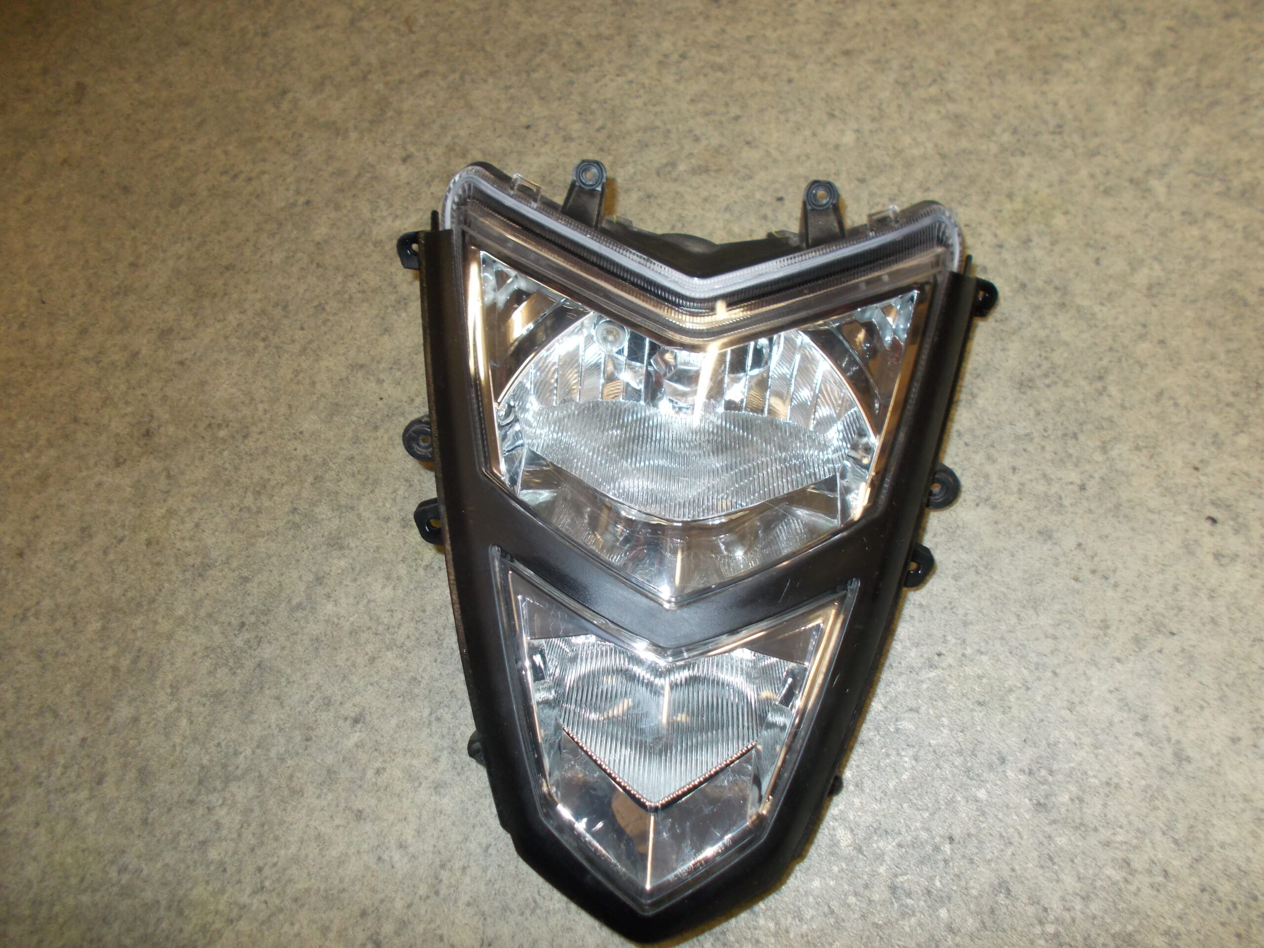 Gebrauchter Scheinwerfer incl. Leuchtmittel und Abdeckrahmen in schwarz von einem Motorroller TGB Bullet 50 / Pegasus R50X.